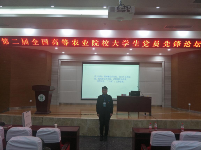 为深入贯彻党的十九大和全国高校思政工作会议精神,推进“两学一做”制度化常态化建设,深化大学生党建与思想政治教育的研究与实践,促进各高等农业院校间学生党建工作交流。12月23日至24日,第二届全国高等农业院校大学生党员先锋论坛在华中农业大学举行。我院马畅同学作为我校学生党员代表赴武汉参加了这次先锋论坛。
