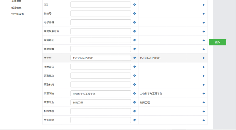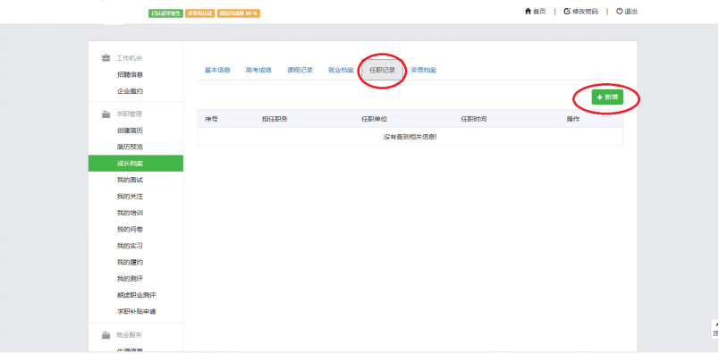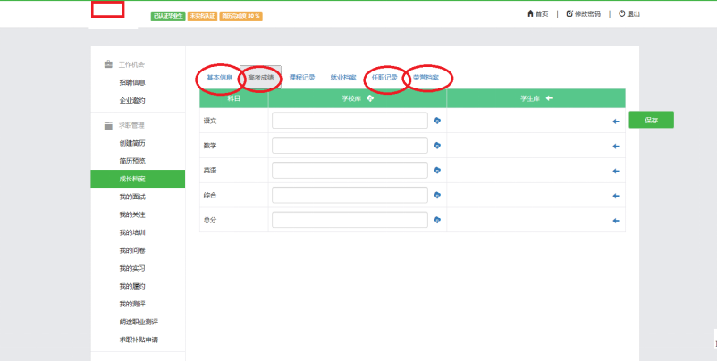 现阶段请新生把【基本信息】和【高考成绩】栏完成好,【任职记录】和【荣誉档案】栏可在在读期间补充完善。