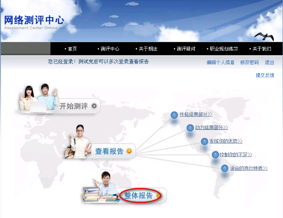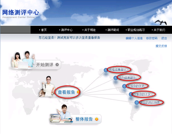 点击【查看报告】或者右边的几个文字链接,学生可以选择性地查看自己最想了解的部分。