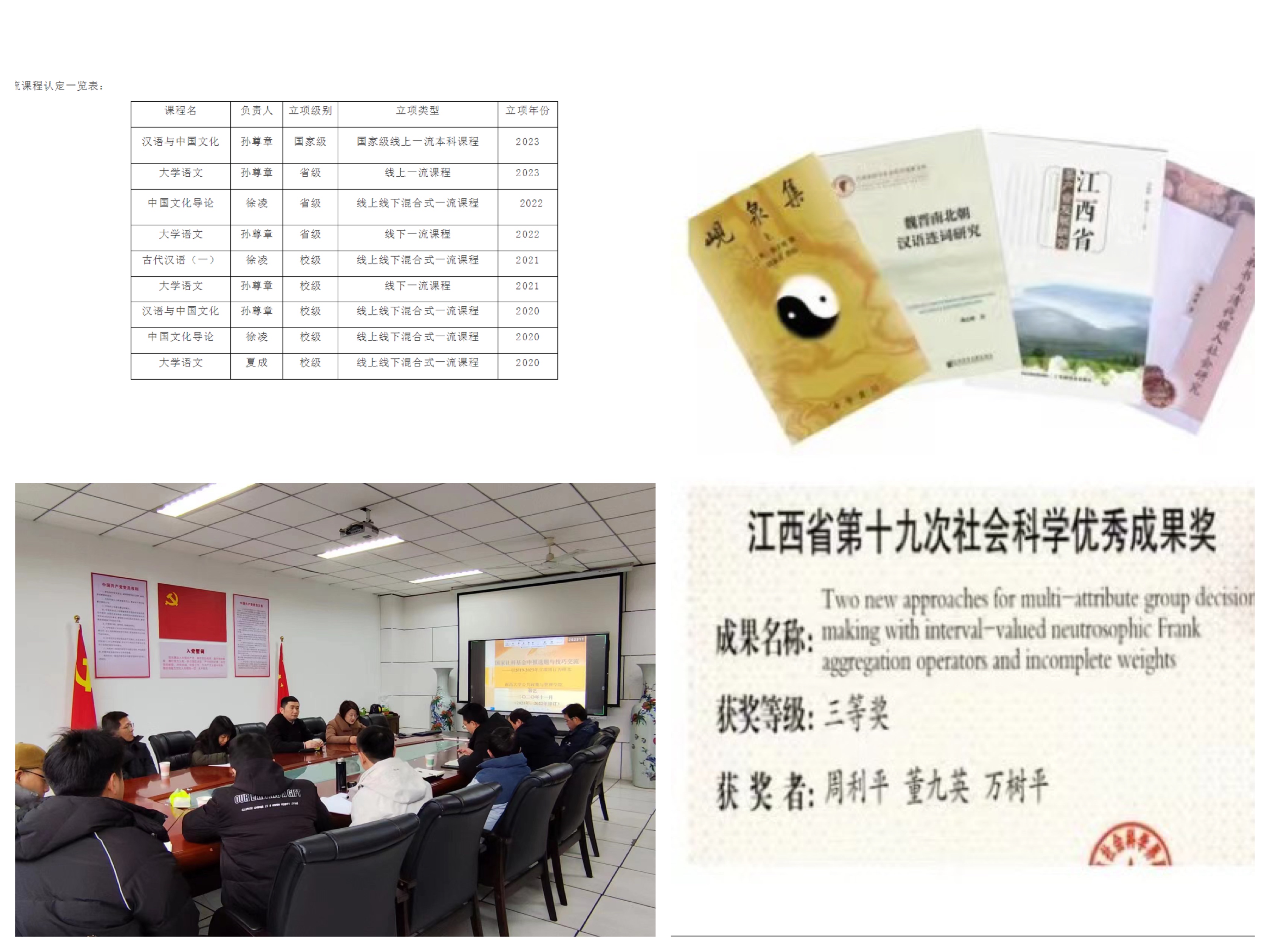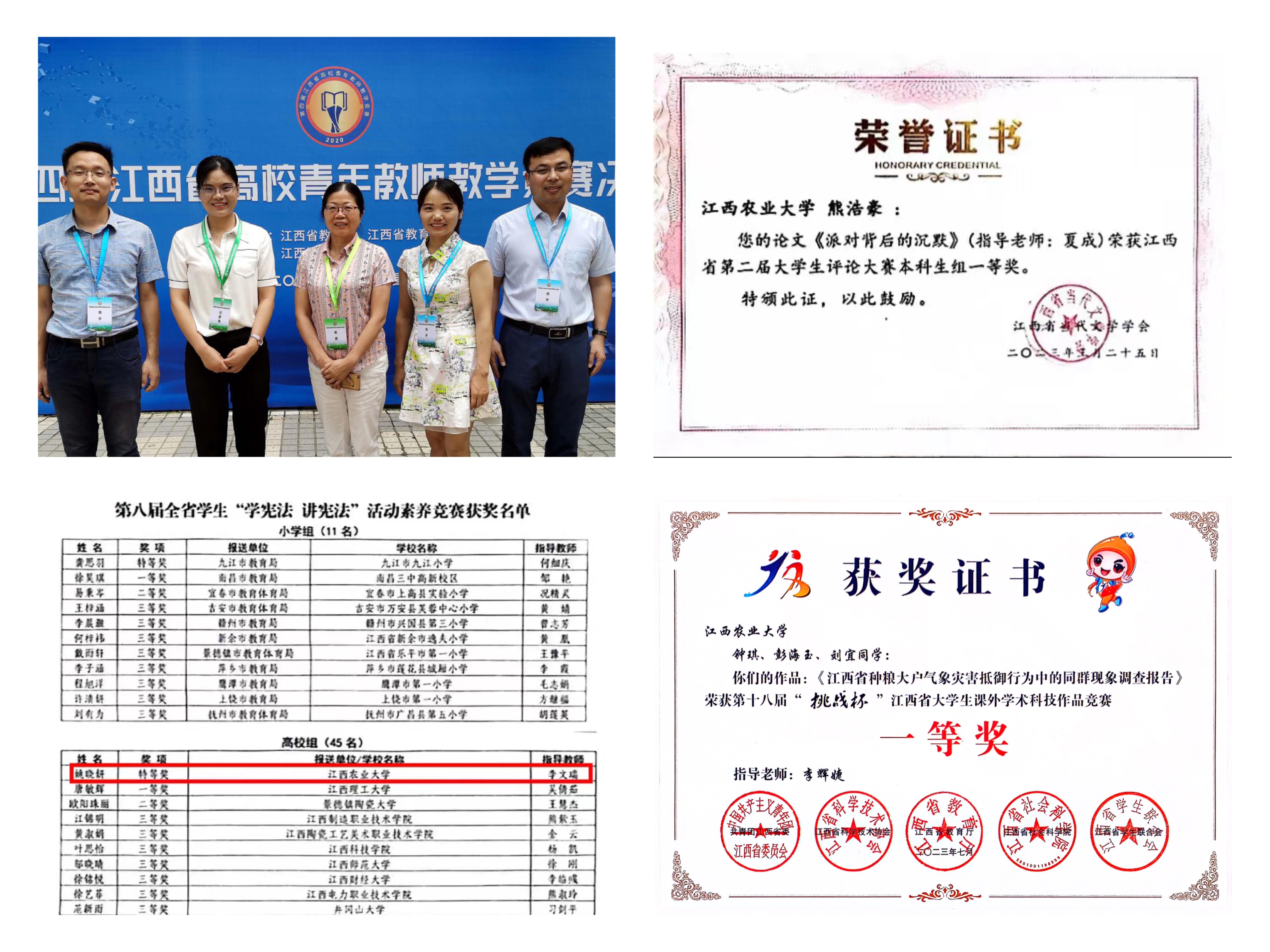 学院坚持以本为本,强化本科教学中心地位,扎实推进教育教学质量稳步提升。积极推进多元化教学的改革创新,成立了教学委员会和学术委员会,制定了学科建设发展规划,出台了本科教学成果研究项目资助办法、师生参加学科专业竞赛资助办法等,《大学语文》《中国文化导论》《汉语与中国文化》《公共事业管理学》等一批课程分别获得国家级线上一流本科课程、省级一流本科课程、精品在线开放课程、高校育人课程共享计划课程、防疫期间线上教学优质课等资助或奖励。获得省微课比赛、省高校青年教师教学竞赛、省移动教学大赛等省级教学竞赛奖近10项,获省级教学成果奖、校大北农教学精英奖等10多项,2位教师获评校“优秀教师”,1位教师获评“校所合作工作优秀教师”。1位本科生作为江西高校唯一代表获得全国学生“学宪法讲宪法”活动一等奖1项、江西赛区素养竞赛高校组特等奖1项;专业教师指导本科生参加专业类比赛、竞赛和展演获省级及以上奖励近400人次,创新创业类项目获批省级以上立项10余项。