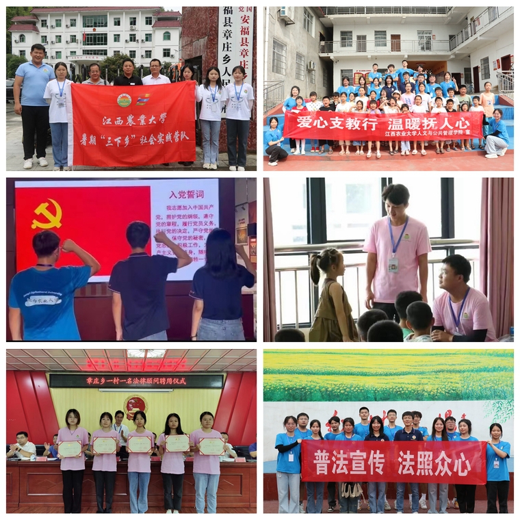 为深入贯彻落实习近平总书记关于教育工作的重要论述,引导青年学子在实践中受教育、长才干、作奉献,立志成为有理想、敢担当、能吃苦、肯奋斗的新时代好青年,近日,人文与公共管理学院组建了由党员和入党积极分子参加的“一村一名法律顾问,共育农村法律明白人”志愿服务团队,在宜春市彬江镇社树村、吉安市安福县章庄乡开展送法下乡等“三下乡”社会实践活动,助力乡村振兴,开展红色走读,推动主题教育走深走实。