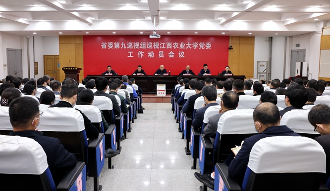 根据省委统一部署,4月7日,省委第九巡视组巡视江西农业大学党委工作动员会召开。会前,省委第九巡视组组长王金林与江西农业大学党委书记黄路生,校党委副书记、校长赵小敏见面沟通,通报巡视工作有关安排。会上,王金林作动员讲话,对深入学习贯彻习近平总书记关于巡视工作重要讲话精神和党中央、省委决策部署,做好巡视工作提出要求。黄路生主持会议并讲话。