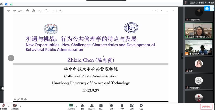 9月22日晚,华中科技大学公共管理学院教授、博士生导师陈志霞应邀开展线上学术讲座。院长魏毅教授主持本次讲座,学院部分教师和全体研究生通过线上线下方式参加。