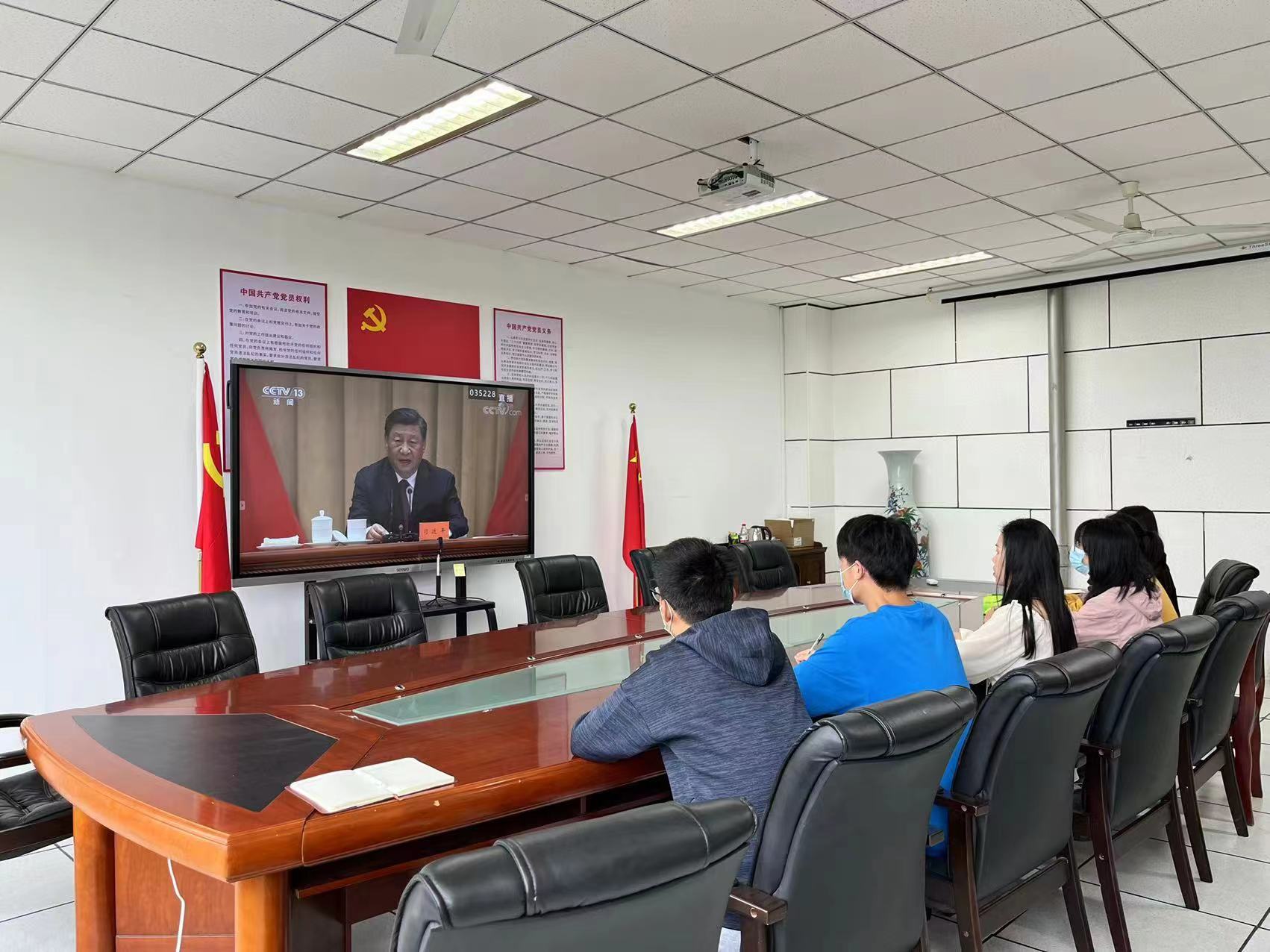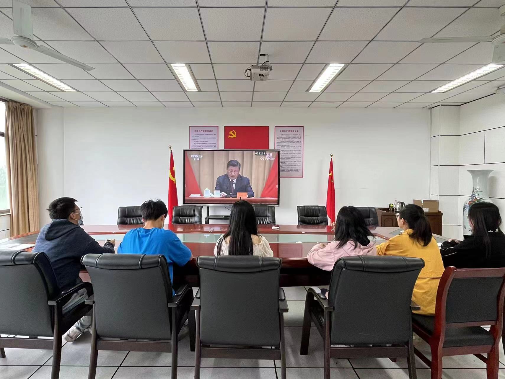 2022年是中国共产主义青年团成立100周年。5月10日上午,庆祝中国共产主义青年团成立100周年大会于人民大会堂隆重召开。我院通过线上线下的方式,组织全院师生收听收看大会直播,聆听总书记的重要讲话,畅谈学习体会。学院在院办小会议室设立会场,组织全体政治辅导员、院分团委学生干部集中观看,各班团支部组织同学在宿舍实时收看大会直播。