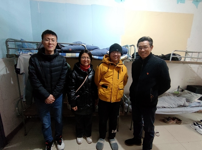 我院硕士研究生魏川林同学和本科生刘相成同学因为家乡疫情防控的要求,留在学校过年。杨峰一行仔细询问了同学们的学习情况、生活情况、假期安排,征询了同学们对学院工作的建议,希望同学们利用好假期加强学习,嘱咐同学们注意防寒保暖,遵守防疫要求,有困难及时向学院反映,祝福同学们度过欢乐祥和的新春佳节。