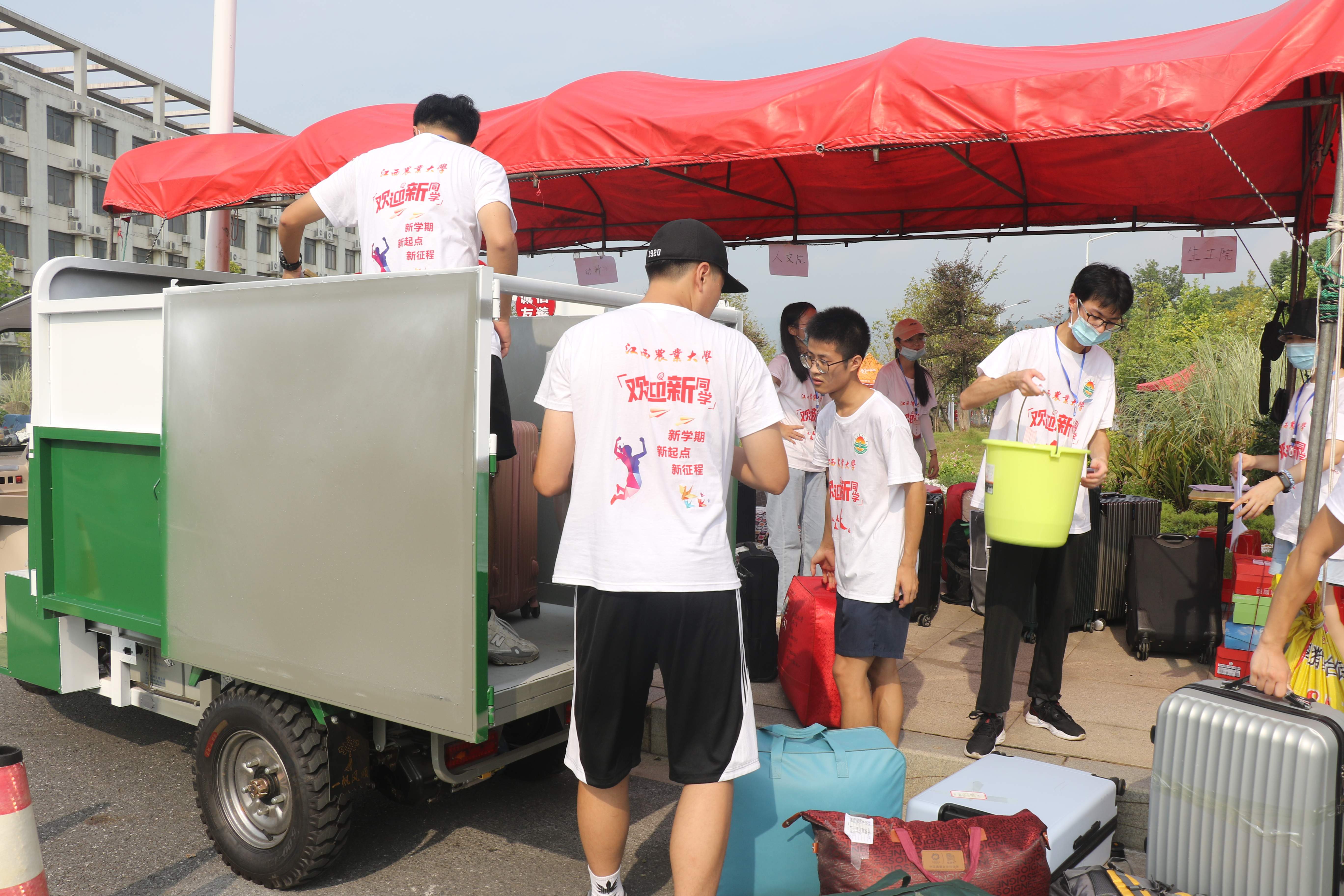 绿色通道:打通学子入学“最后一公里”。由于疫情防控需要,接送学生车辆及人员无特殊原因不得进入校园,学校特设新生入校专用通道,学院借助接待车为新生提供行李搬运等服务,学院学生党员佩戴党员徽章开展志愿服务,发挥了党员先锋模范作用。学生志愿者在志愿服务点将每批到达的新生引导至学院报道处,保障新生能够顺利报道,在迎新一线彰显良好精神风貌。值得一提的是,今年我院特意将新生报道点安排至宿舍楼下,完成信息登记后,新生即可拎包入住,解决新生报道“最后一公里”难的问题。