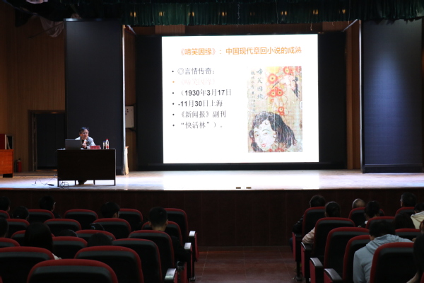 11月9日晚7点,应我院邀请,安徽省张恨水研究会常务副会长谢家顺教授在音乐厅为我院师生作“张恨水对中国现代章回小说的贡献”专题学术报告。我院党委书记杨峰、院长宋秉斌、副院长李道和出席报告会,200余名师生听取学术报告。