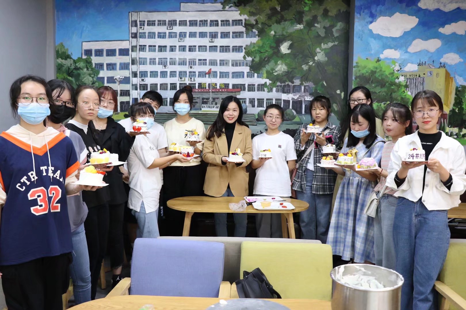 强化劳动育人功能,引导青年学生为祖国献上“手工礼”。10月4日的学院筹备的DIY制作蛋糕活动如期举行,辅导员文君和学生一同发挥想象、构思图案、挑选食材、装饰裱花,装点属于自己的小蛋糕,尽管制作的过程充满了许多的“小意外”,但最终制作出的作品确实令人大为惊叹:有的将国旗画到了蛋糕上,祝祖国生日快乐;有的把寝室号写到了蛋糕上,要带回去和室友一起分享;还有的把蛋糕做成了一个圆圆的“明月”,表达了中秋节思念家人的情思......“蛋糕很甜,但是我们的心更甜!”一位手捧蛋糕的学生这样说道。DIY制作是学院劳动教育的一次新鲜尝试,不仅在轻松愉悦的氛围中增强了学生的创作灵感和动手能力,也让每位参加制作的同学在动手的过程中体会到劳动的乐趣,更为祖国生日献上了一份“手工礼”。