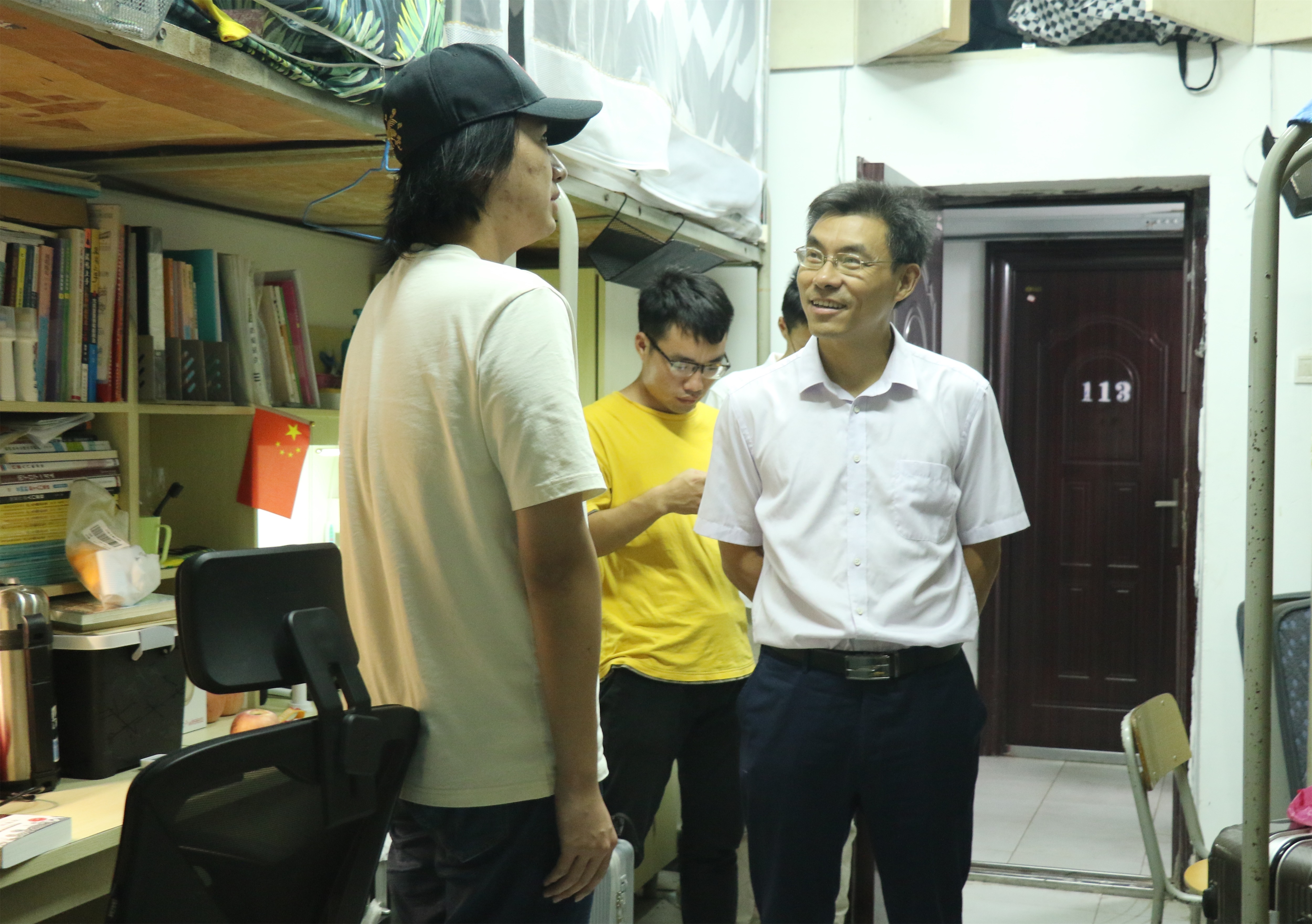 晚上7时30分,在学院辅导员的引导陪同下,学院领导班子深入学生寝室,详细查看宿舍设施、卫生情况,从学习、未来规划、兴趣爱好等方面与同学们进行了亲切交流,学院领导特别提醒了大家在疫情期间切勿放松警惕、注意个人卫生以保证生活质量,为新学期新生活保驾护航。