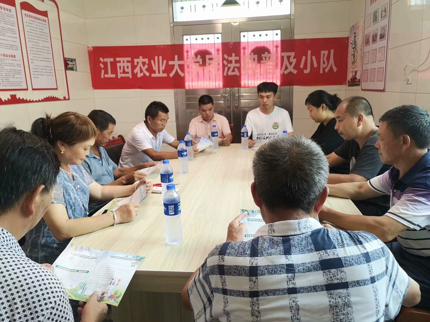 摸索模式,线上距离也很近。活动筹备阶段,服务团成员虽然身处全国各地,但是交流热情并没有因为距离而褪减,每天的腾讯会议按时进行,各成员抛出工作疑惑、分享工作经验,积极采用头脑风暴法解决相关问题。活动进行阶段,“互联网+三下乡”模式更显其优势,服务团成员之间利用网络平台分享资料、完成任务;团队成员利用网络和农民群众普法宣传,拉进“心与心”的距离。