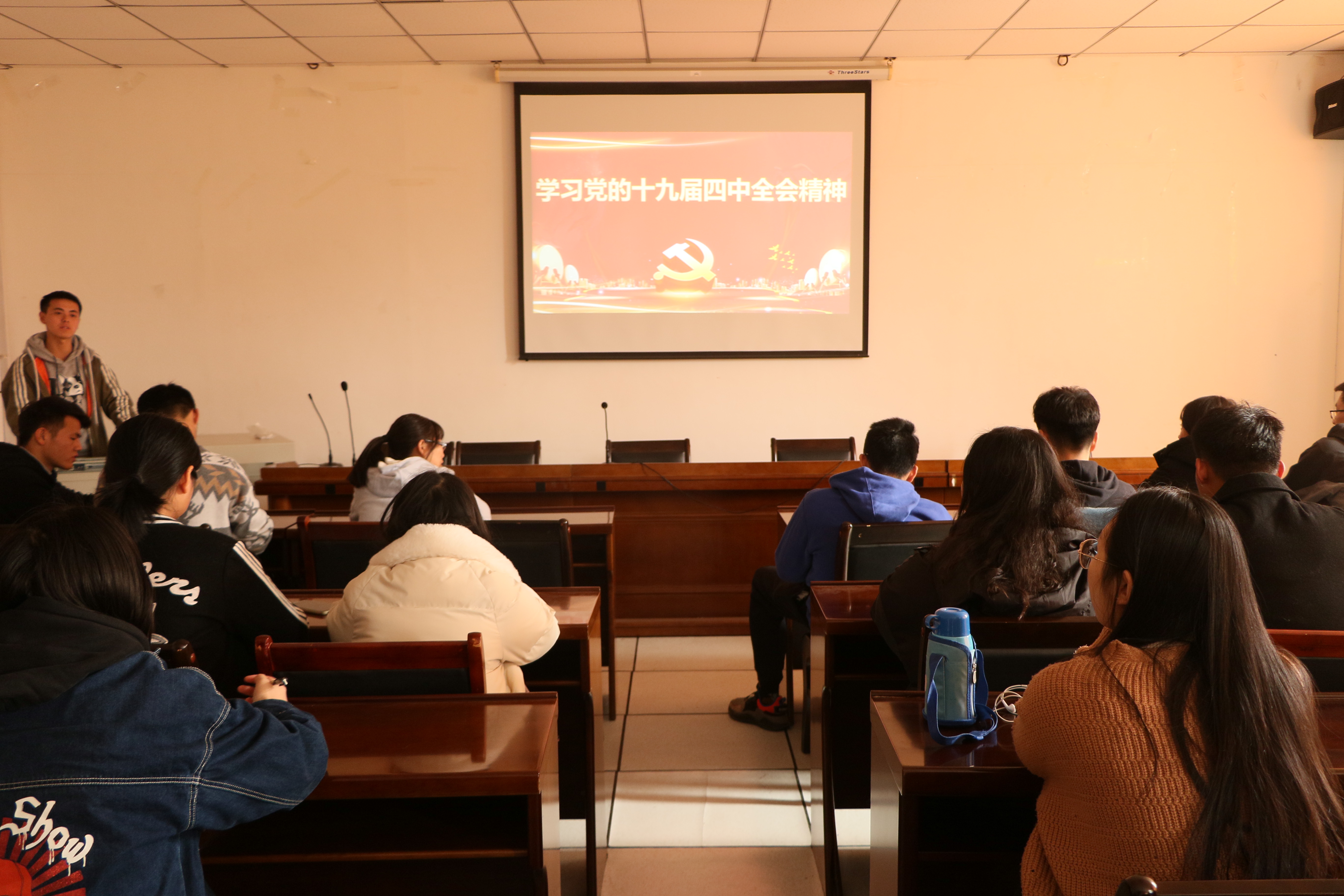 伟大宣示鼓舞人心,集中学习凝聚力量。12月4日我院组织全院团干部在院办大会议室学习四中全会精神,团委学生副书记郭昊向在场人员传达了党的十九届四中全会内容和全会《决定》提出的总体要求,总体目标和重点任务等,同时在场团干部对全会的重大意义进行讨论,这进一步提升了团干部对现阶段国情的认识,增强了对国家制度和治理能力的自信。随后,全体成员一同观看学习党的十九届四中全会精神视频,与会成员深受鼓舞,纷纷表示在今后学习和生活中将会勇于担当作为,为推进国家治理体系和治理能力现代化贡献青春力量。