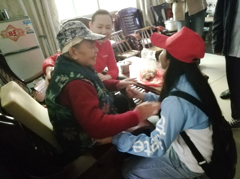 飘飘冷雨路,温暖意融融。虽然天气状况较差,但也不能阻挡学生党员们的活动热情。在青岚村里,村干部汪书记带领大家分别走访了8位儿童和4位高龄老人。学生党员与志愿者们带着牛奶、大米、食用油等生活用品到各家后与老人孩子们拉家常,了解他们日常生活和饮食起居,尽力帮助做些家务,积极帮助老人们打扫卫生,和小朋友一起玩游戏,做一些力所能及的事情帮助到他们,在这个寒冷的冬日给他们送去温暖。