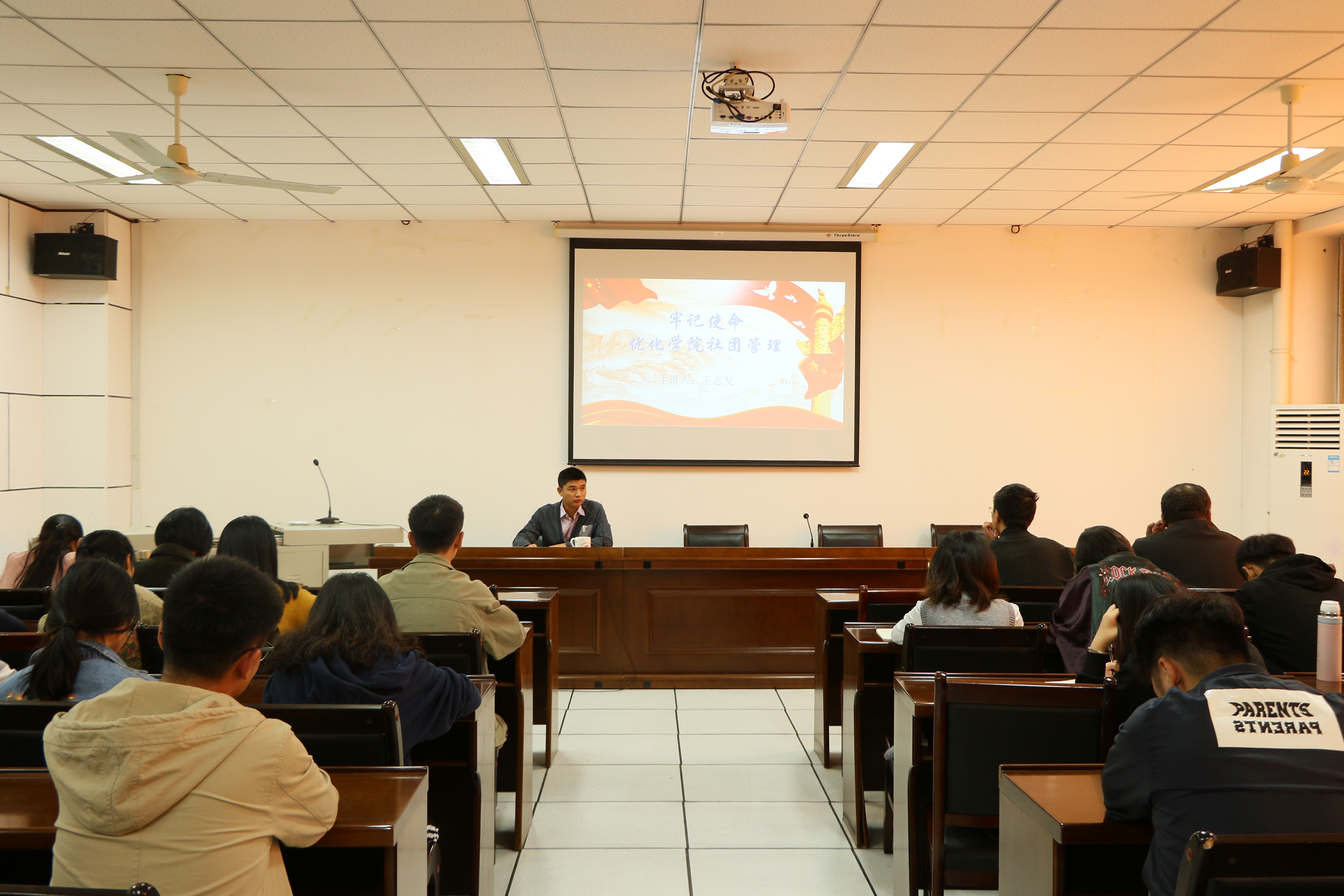 牢记使命再出发,优化学院社团建设管理。大学生社团是拓展大学生素质的重要平台,有利于繁荣大学校园文化,丰富大学生的课外生活,促进学生的全面发展。为有效加强社团管理,让社团在师生中发挥更大作用,学院党委副书记王志发就如何优化社团管理结构向在场人员阐述看法。王志发副书记讲道目前我院社团仍然存在社团活动质量偏低、指导老师缺位以及在管理和人才分配上的不足。在谈到如何促进社团发展时,王书记提出两点要求:一是社团成员要努力学习习近平新时代中国特色社会主义思想,感悟时代使命,同时要增强对社团主题活动的基本认识,要以立德树人为根本,以强农兴农为己任,打造社团精品活动;二是要加强兄弟社团的合作交流,在经费、物资、场所要做到互利共享,积极在党组织的领导下将社团文化发扬光大。