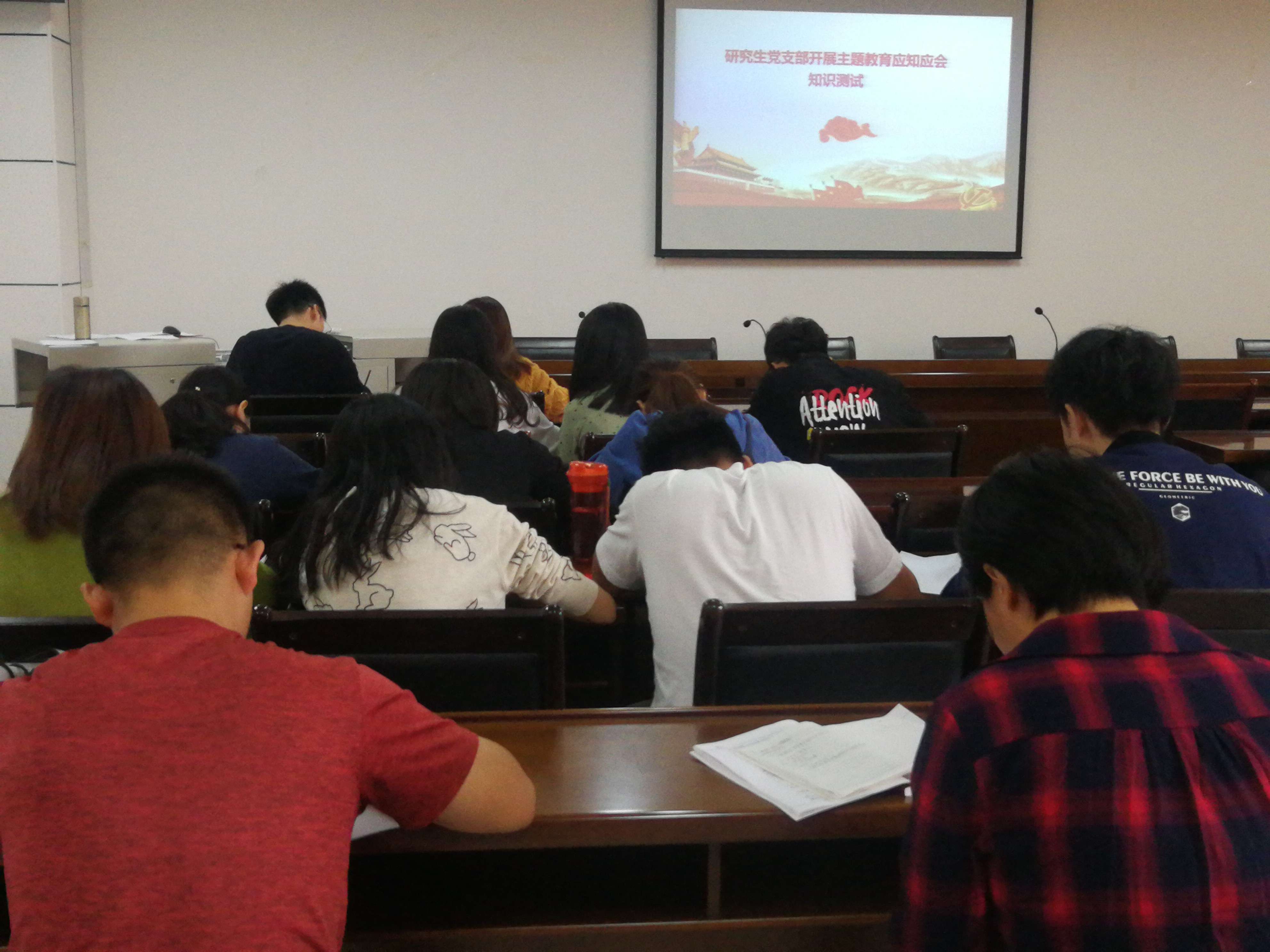 为了精准检视学生党员学习教育实效,10月15日下午,学院党委组织全体学生党员在院办215室开展主题教育应知应会知识测试。