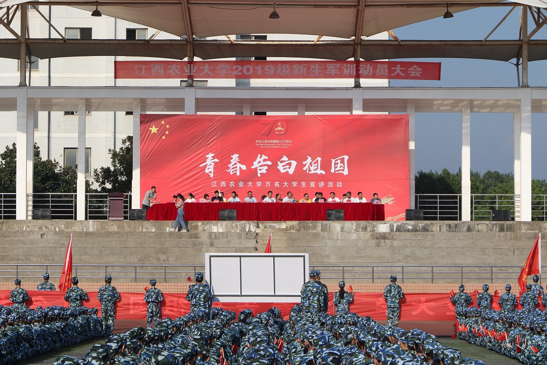 训青年体魄,立凌云壮志。9月19日上午,我校2019级新生军训动员大会在东区运动场举行,副校长许斌华,各学院、各有关职能部门负责人出席了此次大会。许斌华副校长亲切问候全校新生并对军训提出相关要求,教官和新生代表发言为军训助威。最后,我院新生歌唱祖国,以饱满的精神,整齐地列队宣告军训的正式开始。