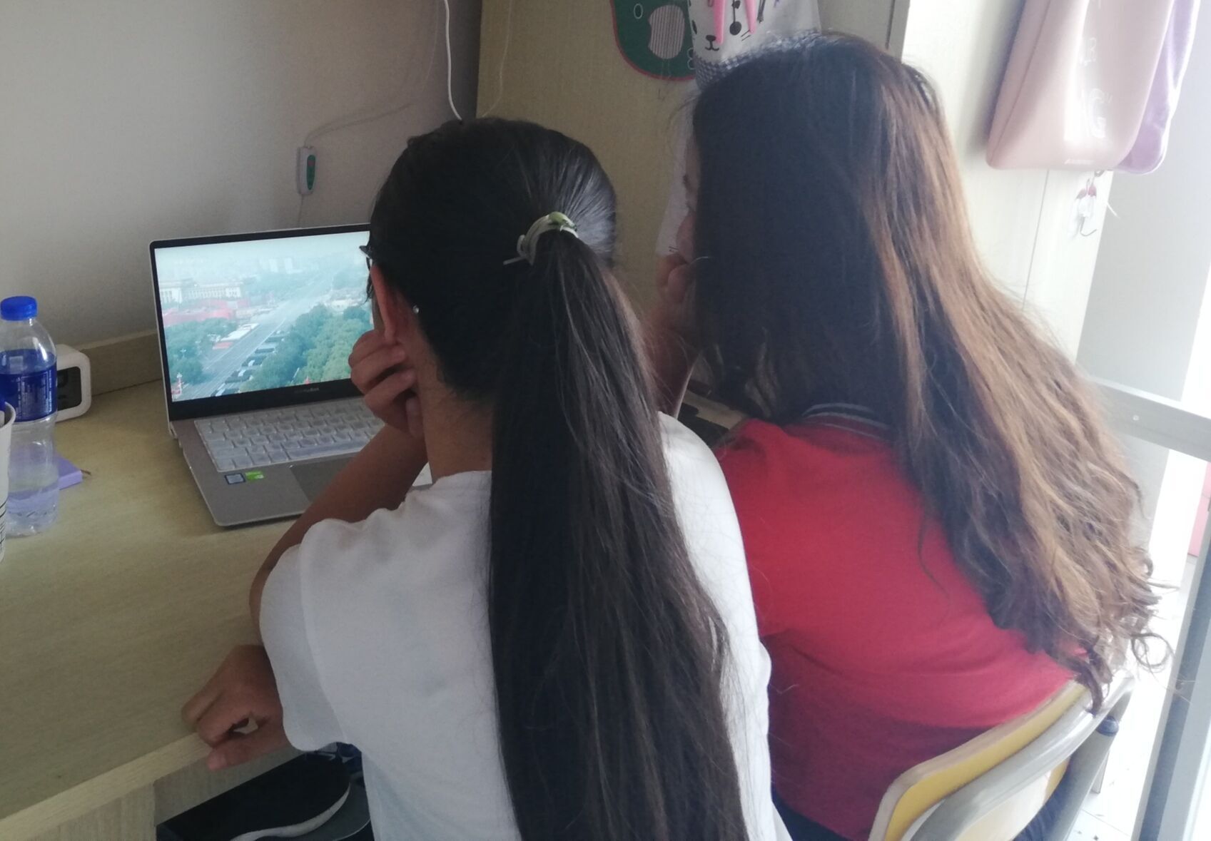 此外,不在学校的师生自行在寝室、回家途中、家中等地自行观看阅兵盛况,并在微信群发表感言。