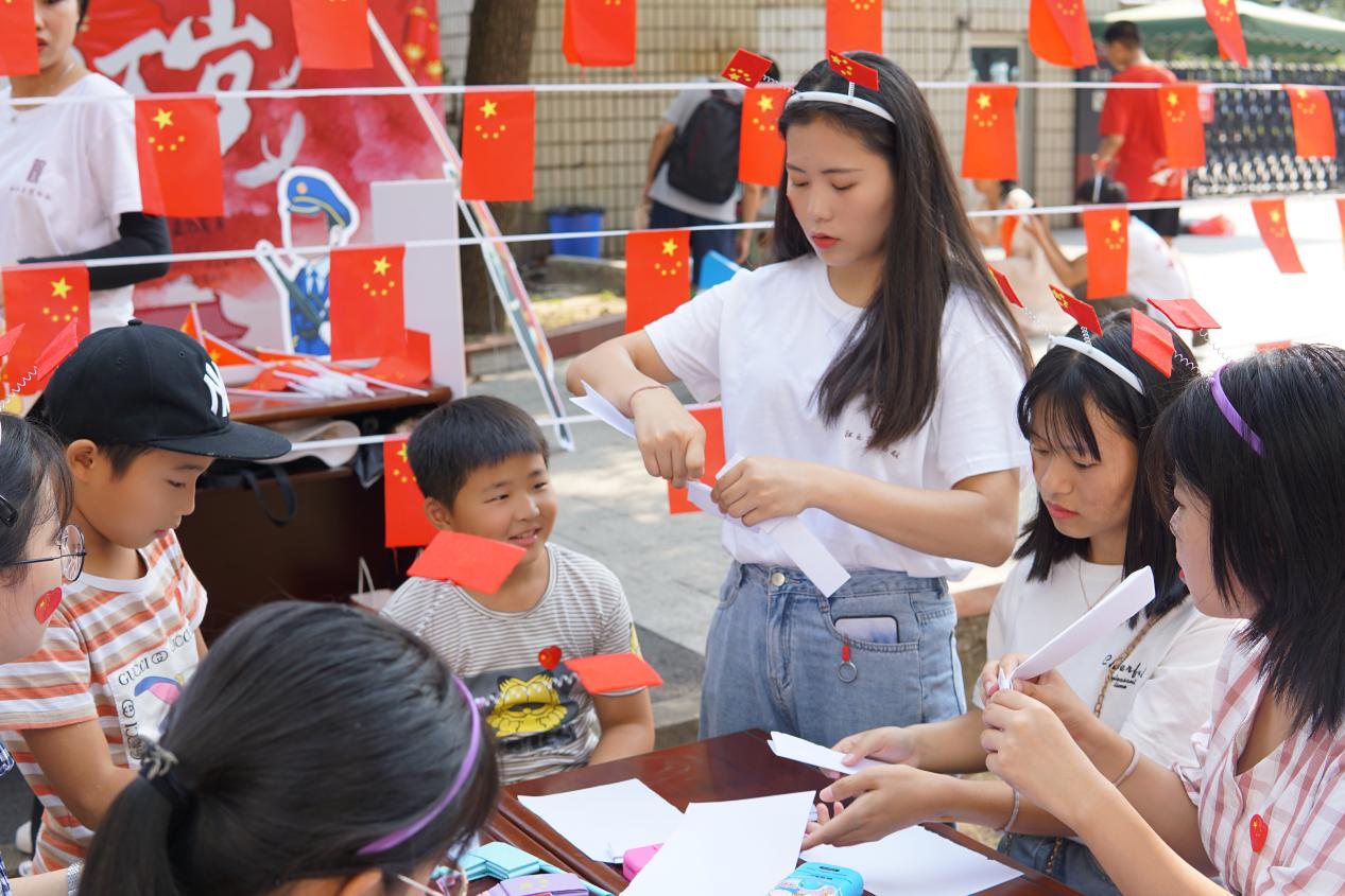 江西省博物馆隆重推出“中国梦,爱国情”主题活动,结合江西历史文化和馆藏特色,为中华人民共和国成立70周年献礼。本次活动以科教、军事、生态、经济、文化五方面为主题,活动现场红旗飘扬,手拿小红旗的游客们积极性高涨。打卡国家军事实力,动手制作手枪;打卡鄱阳湖生态,精心制作叶脉书签;打卡昆剧《牡丹亭》,穿昆服,了解传统曲艺文化;打卡飞速发展的经济,穿越时代,绘制“五铢钱”;打卡白鹿洞书院,化身书童,品传统文化内涵。在探寻多样文化之时,游客们把对祖国的热爱融入到手下的作品之中,绘制五星红旗、写下“I LOVE CHINA”“祖国母亲70岁生日快乐”等话语,激情告白祖国。