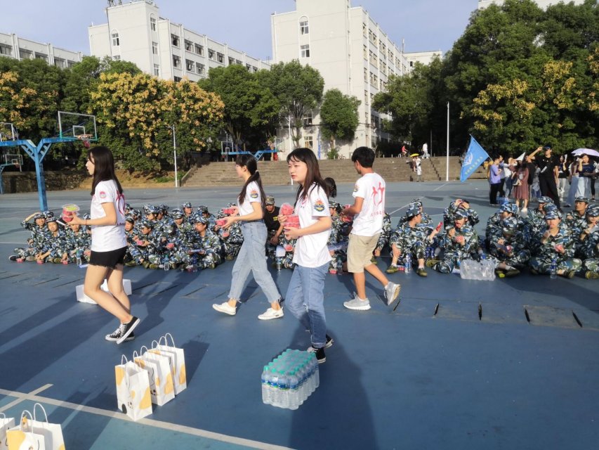 新生军训时期,太阳下的军训尤为辛苦。志愿者们于24日午后给军训教官和新生送去了水和水果,在炎热的天气里,给他们带去了一丝清凉,也带去了一份轻松。在军训慰问的问答环节,2019级新生们高举着手,叫喊声此起彼伏,现场一片热闹,慰问活动圆满结束。