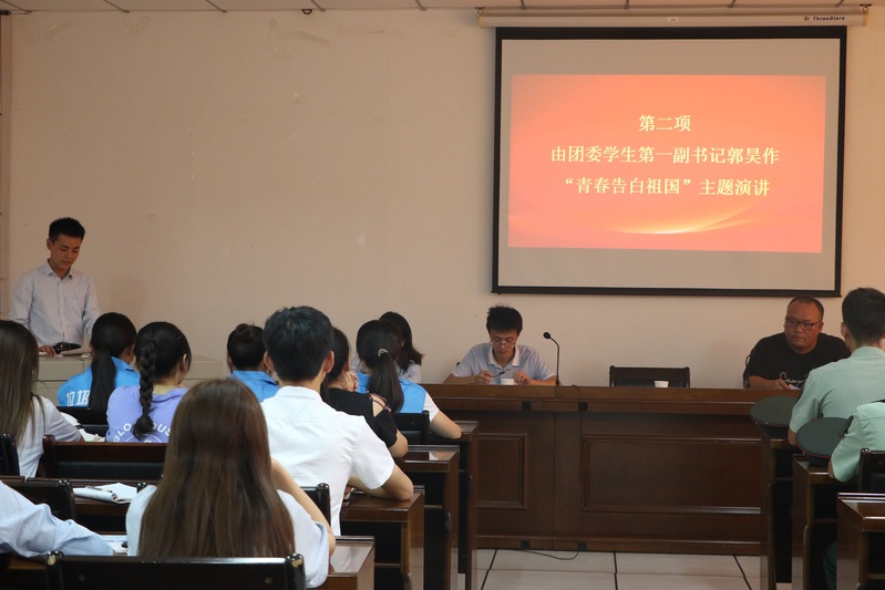 在新中国即将成立70周年之际,为充分展示我院学子的青春风采和爱国情怀,号召当代青年用青春告白祖国,与时代共命运。我院于9月10日下午4点在院办二楼大会议室举行以“青春告白祖国”为主题的宣讲活动。院党委副书记王志发,团委书记万旻轩,团委指导老师袁梁,丁颖,付文以及全体团学社干部出席本次活动。