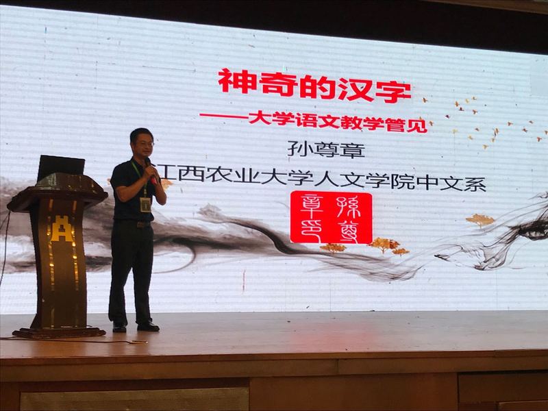 研讨会上,孙尊章老师作为嘉宾进行了示范教学。孙老师以我校大学语文开设的历史、现状和教学特色为切入点,分享我校将中华优秀传统文化融入大学语文教学的成果与经验,并向与会老师推荐由我校本专业老师共同编写的大学语文教材。紧接着,以超星“学习通”为例,探讨了移动教学模式对大学语文教学的积极推动作用,且以“神奇的汉字”为主题进行了示范。孙老师的示范教学深入浅出、幽默生动,引起了与会老师的浓厚兴趣。我校作为农业院校,坚持在全校将大学语文开设为公共必修课的做法,得到了大家的一致认可。