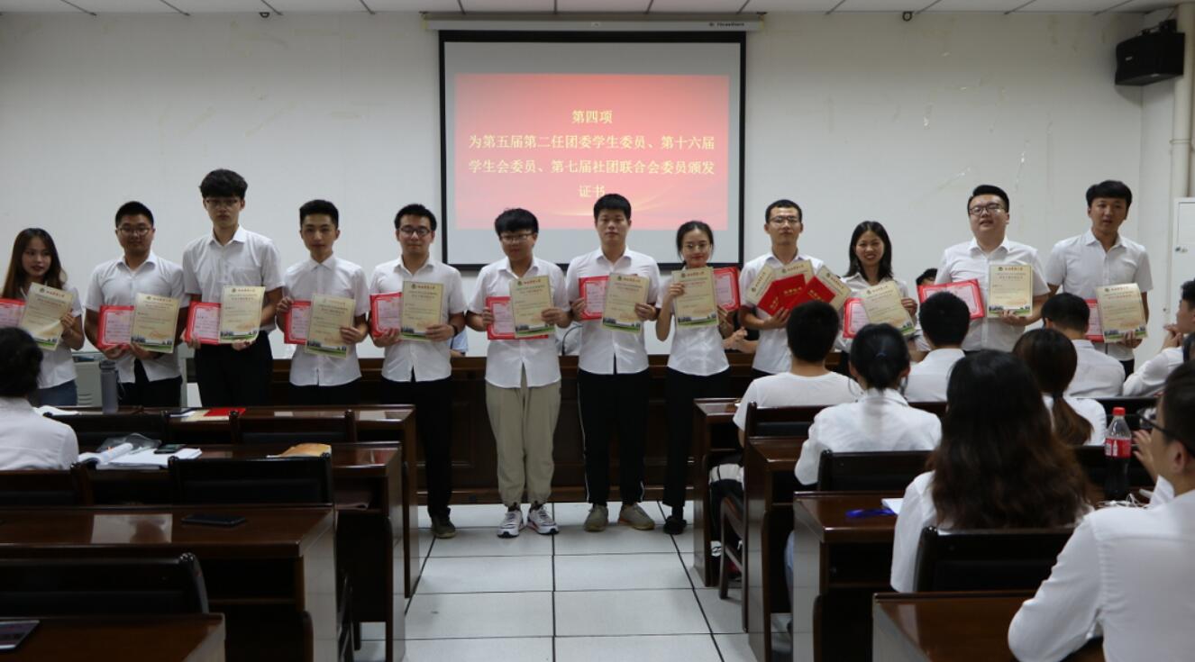大会伊始,由我院党委副书记王志发宣读新一届团学社学生干部名单。接着,由我院各位老师为上一届团学社学生委员颁发荣誉证书。证书代表荣誉,而更多的是其背后承载的责任。在此换届之际,老新委员发表离、就职感言,表达对学院老师、工作伙伴的感谢以及对我院团学社未来的祝福与期望。