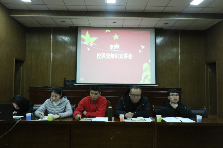 为提高我院学子对非法借贷的认知,增强对非法校园贷的风险防范意识,3月15号晚七点,我院于院办504举办了以“远离非法借贷,拒绝高利诱惑”为主题的宣讲会。院党委副书记王志发、院团委书记万旻轩、院团委指导老师昝祺祺、付文出席了本次会议。