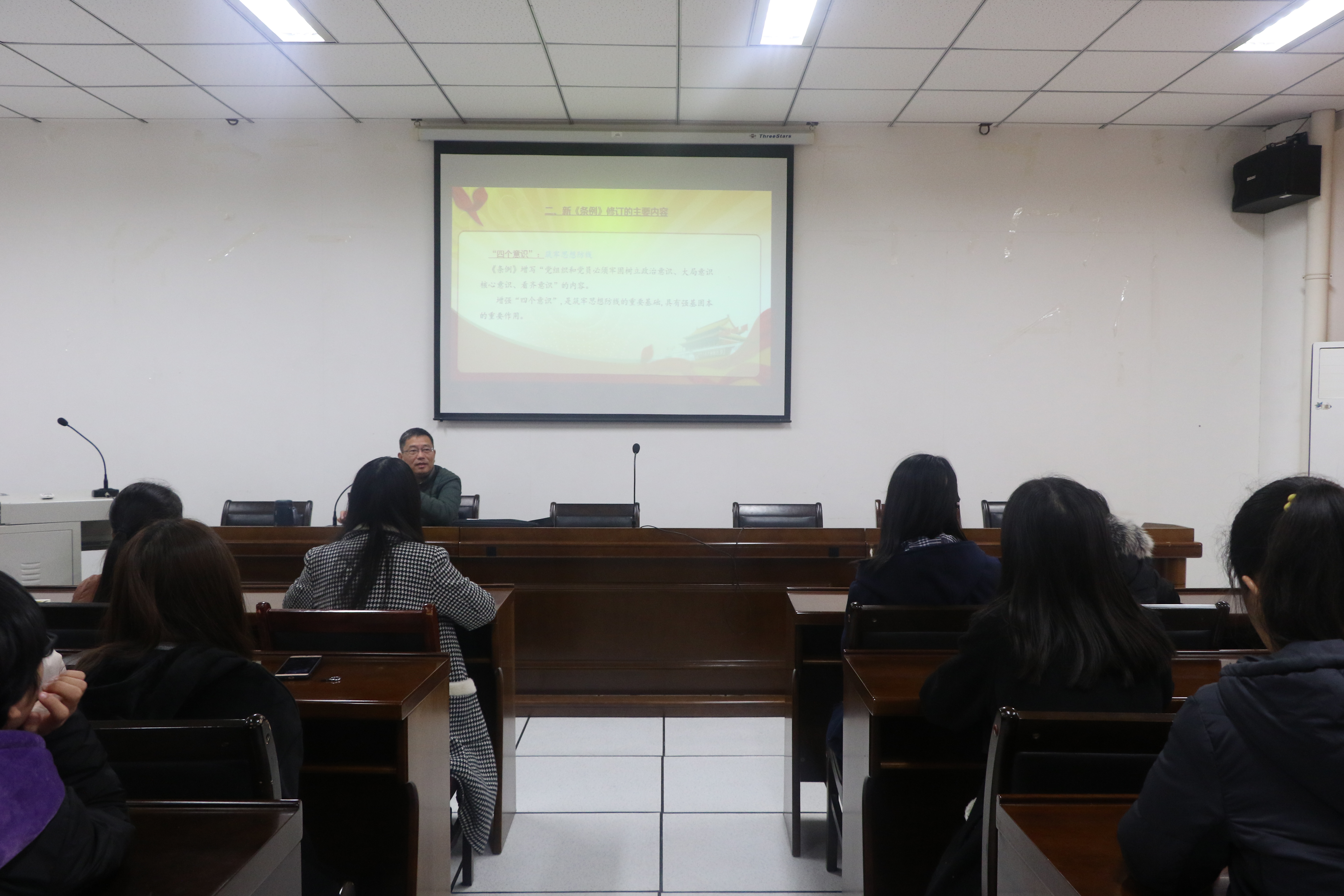 为深化学生对党纪了解,培养学生向党看齐意识。12月5日下午1点,我院院长宋秉斌在院办二楼大会议室为学生讲解新修订《中国共产党纪律处分条例》。