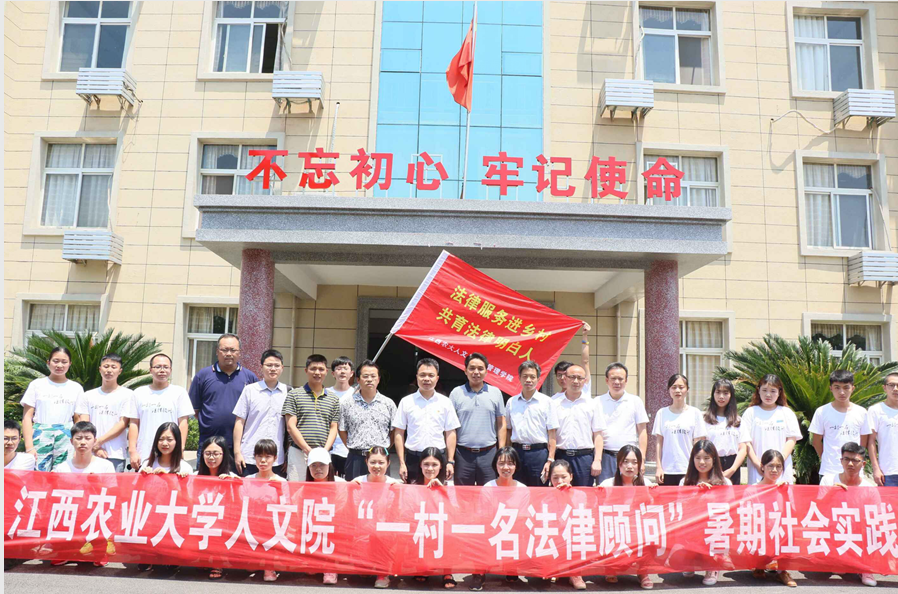在全国上下践行十九大之际,积极响应习近平总书记对青年志愿者的号召,加强大学生的社会实践能力。我院团委于暑假期间动员组织学生骨干,建立了“一村一法律顾问”普法实践团两支队伍和教育关爱服务团,分别在我院团委副书记万旻轩和团委指导老师鹿光耀的带领下赴往德兴市与安福县开展暑期“三下乡”社会实践系列活动。