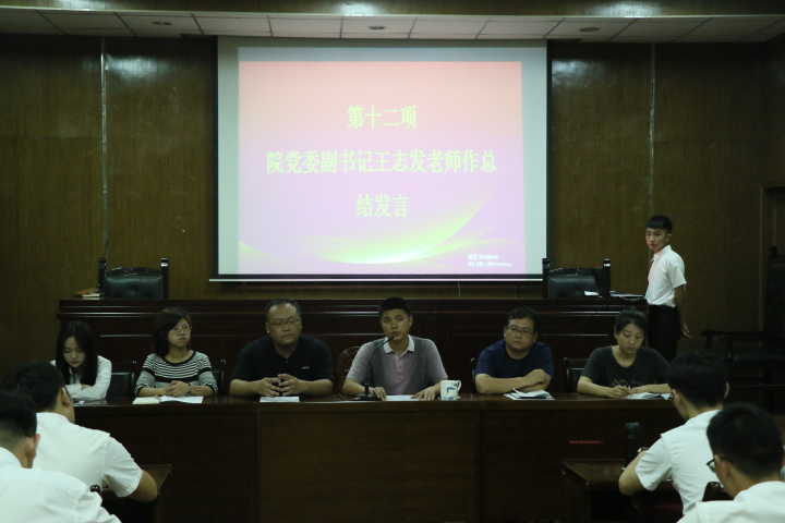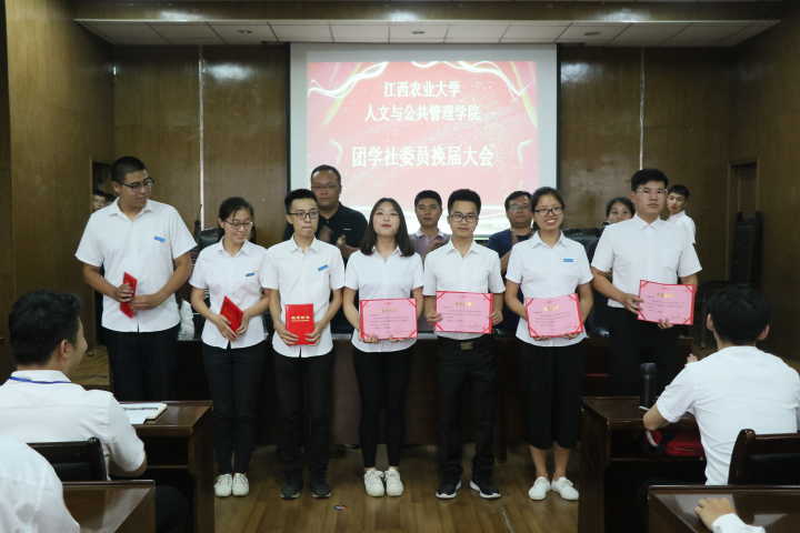 会议伊始,由院党委副书记王志发,院团委书记万旻轩,指导老师鹿光耀老师依次宣读了新一任团学社学生干部名单。宣读完毕后,会场响起了热烈的掌声,与会老师为上一届学生委员颁发了荣誉证书。随后,由上一届团学社学生代表发表离职感想,做了简单的回顾和总结。新一届团学社学生代表发表就职感想,提出新学年的工作设想,院团委指导老师鹿光耀就近期工作做具体工作部署。会议最后,由院党委副书记王志发作总结性讲话,书记充分肯定了上一届学生干部为学院所做出的积极贡献,并对新一届学生干部提出“牢记四心”的要求:希望大家不忘初心,用心做事,真心做人,细心工作,提高大局意识和服务意识,争做合格的学生干部。(院团委宣传部)