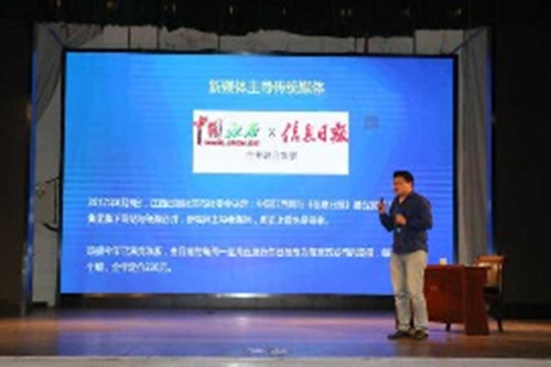 公开课上,胡武龙围绕“新媒体需要新思维”这一主题展开演讲。首先,他以当今社会时代热点为例,对当前90%新媒体的整体现状进行了剖析,通过小故事测试告诉大家:“不要用既定的价值和思维去做新媒体”。随后,胡武龙向大家生动形象地讲解了打造出热文的九大要点以及做出吸引大众眼球的微信推送的秘诀。同时,他悉心地鼓励大家要做一位优秀的合格的新媒体人,要有归零心态和倒逼思维,努力做到无问西东,要有敢于突破、贵在坚持的工匠精神,同学们听后深受鼓舞。
