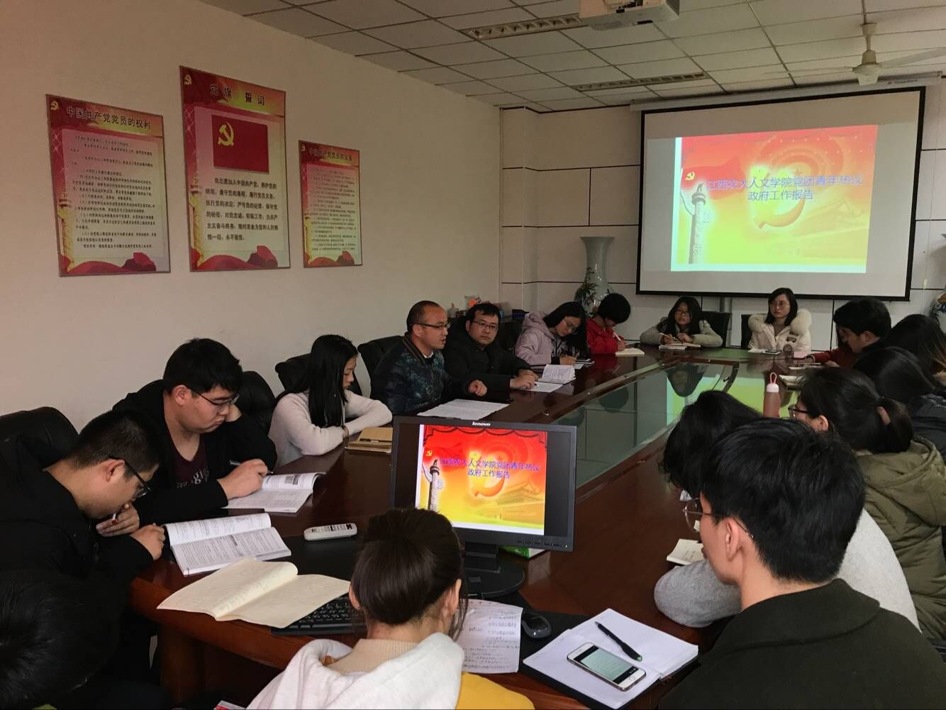 党团青年对政府工作报告中提出的“创新、扶贫、取消流量漫游等”进行了热议,纷纷表示:国家为青年创造了干事创业的大好环境,真是“厉害了,我的国!”。团委指导老师鹿光耀从“五年发展与大学生相关的成就”对政府工作报告进行解读,并提醒大家共同持续关注两会的最新动态。最后,院团委书记陈小志老师总结并强调:“政府报告的一系列数据反映了我国发展进程中的新成就,就业率创历史新高,给我们大学生巨大的鼓舞,加上国家实施的乡村振兴战略,对于我们农业院校的学生,更是指明了方向,只要我们做好职业发展规划,努力学习,一定大有可为”。
