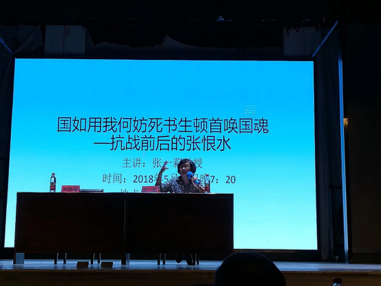 2018年5月25日,在人文学院音乐厅开展以《国如用我何妨死 书生顿首唤国魂——我所知道的张恨水》为题的专题讲座。讲座由我院党委书记郭锦墉教授主持。