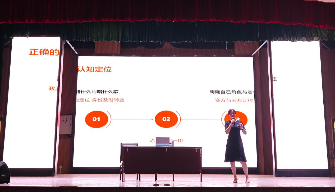 94级文秘专业优秀校友、宁波市海关后勤服务中心办公室主任邓星燃应邀做了题为《行政能力素养》的主题讲座。她从本人的实践工作经验出发,对行政工作应该具备的能力素养进行了深入的学术性阐述与分享。她从正确的认知定位、清晰的逻辑思维、良好的文字驾驭能力等六个方面分析了大学生培养自身行政能力素养,强调学生应具备超强的执行能力和情绪管理能力的重要性。同时,她结合个人生活中的智慧与心得指出,当代大学生应发展个人兴趣爱好,积极投身于体育锻炼与健身活动之中,拓宽其信息获取与认知的边界,并注重培养财务管理与理财规划的意识与能力。活动现场,曹明星为邓星燃颁发聘书,聘请她为学院创新创业导师。