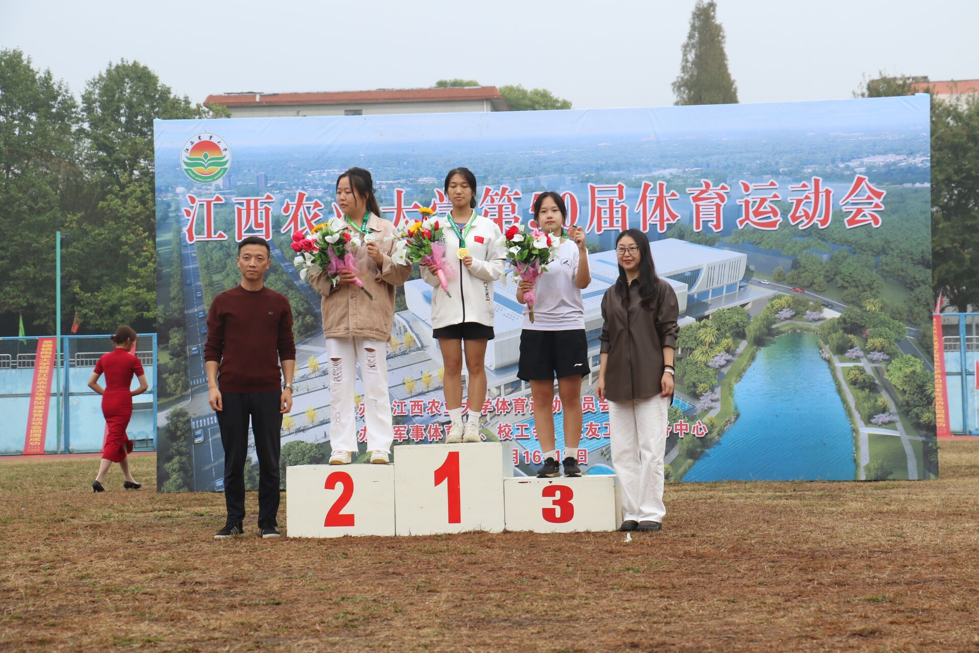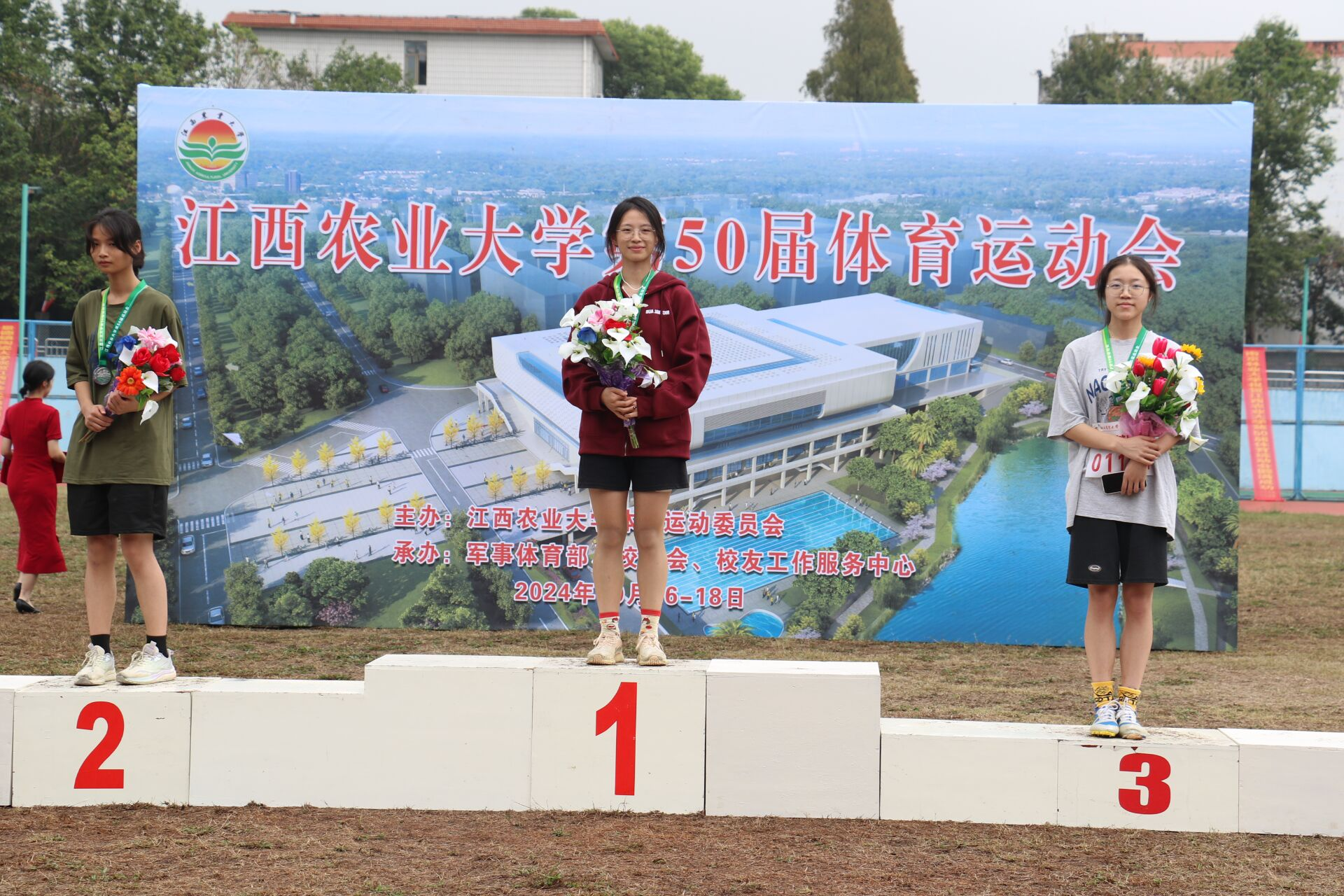 17日,在学生女子甲组跳远决赛及学生女子甲组三级跳远决赛中,法学202201班李霞同学腾跃而起,摘得双面金牌;在学生女子乙组跳远决赛中,公管202402班谌子玲同学和文学202402班刘小婷同学分别取得了第一名和第三名的好成绩。