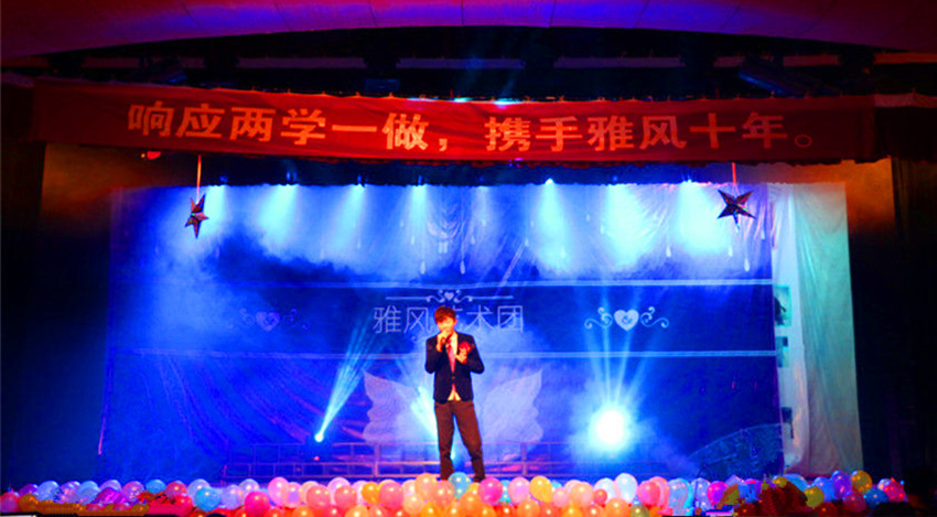 雅风艺术团此次举办的十周年晚会,不仅展现了我院践行“两学一做”的良好成果和传承红色经典的美好愿景,纪念和认可了雅风艺术团一路走来的十年风雨历程,同时还充分展现了我院社团文化的人文气息和我院学子的青春风采。(宣传部 张静茹 赵干 陈杰)