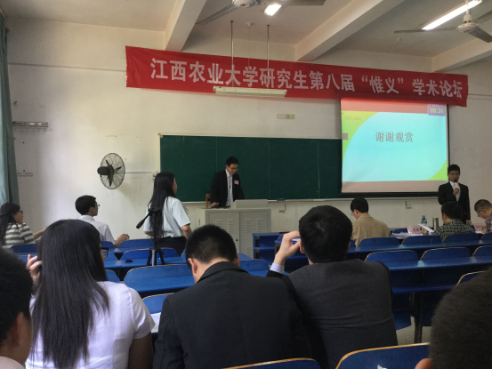 江西农业大学研究生“惟义”学术论坛是我校研究生教育的经典学术活动之一,它能充分激发全体师生的整体学术水平,也给全体师生进行学术交流提供了平台。2016年3月份,江西农业大学研究生第八届“惟义”学术论坛开始进行征稿活动,其中,人文与公共管理学院有将近30名研究生积极参与“惟义”学术论坛投稿,经过专家审核,最终有3名同学进入总决赛,分别是14级行政管理专业陈芳芳,社会保障专业胡倩琳以及15级社会保障专业姚兴安。2016年5月11日,江西农业大学研究生第八届“惟义”学术论坛决赛于江西农业大学第二教学楼111教室隆重召开。