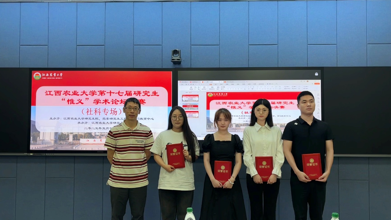 2025年5月19日,江西农业大学第十七届“惟义”学术论坛决赛成功举办。我院2024级行政管理硕士研究生辛婷、魏思琪(指导老师:周利平)荣获社科类二等奖,刘婷(指导老师:李辉婕、胡侦)荣获优胜奖。