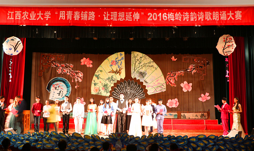 为丰富大学校园生活,营造良好文化氛围,4月22日晚,由校广播站承办的江西农业大学第五届“梅岭诗韵”诗歌朗诵比赛决赛在校大礼堂举行。