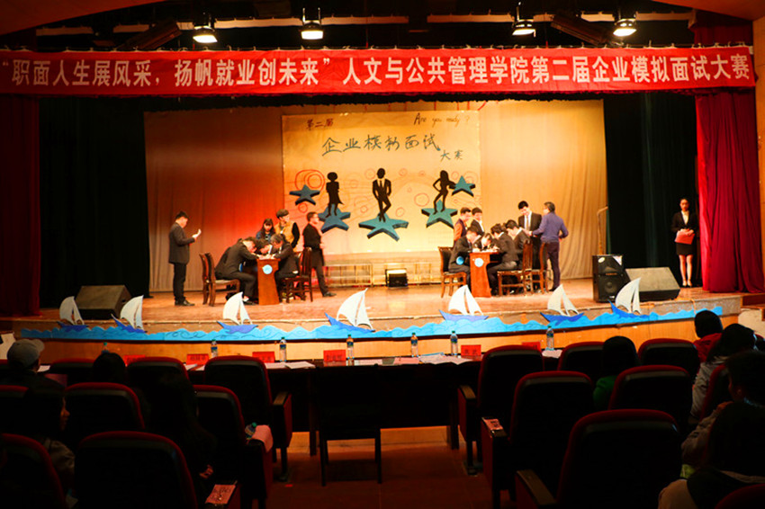 为积极应对即将来临的就业浪潮,进一步提高我院学生的就业意识,3月31日晚,第二届“企业模拟面试”大赛决赛在我院音乐厅成功举办。我院党委副书记王志发、团委书记陈小志以及团委副书记王桂兰出席比赛。此外,我院还特地邀请到6名优秀校友回院传授就业经验,并由该6位职场精英担任比赛评委。