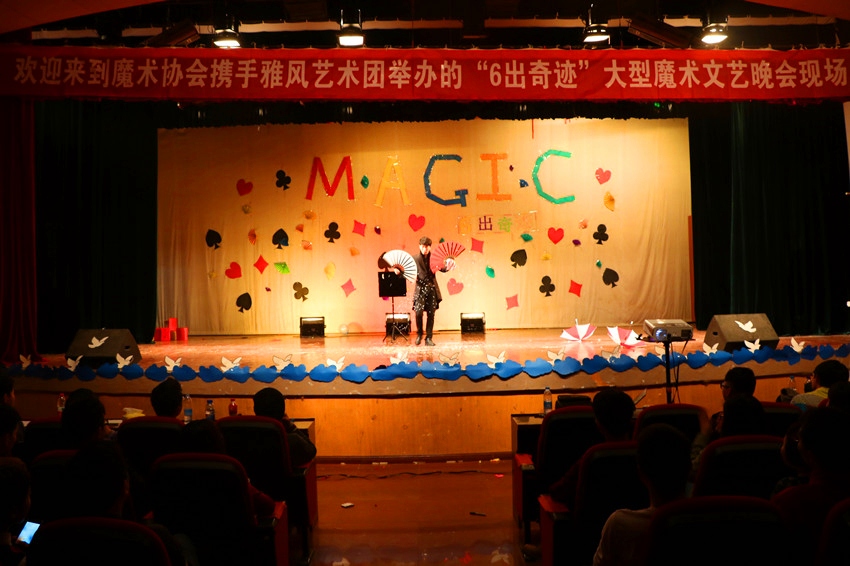 为展现江农学子的精神风貌,进一步推动校园文化发展,4月9日晚,魔术协会携手我院雅风艺术团于音乐厅成功举办了“6出奇迹”大型魔术文艺晚会。各兄弟院校代表团应邀参加。