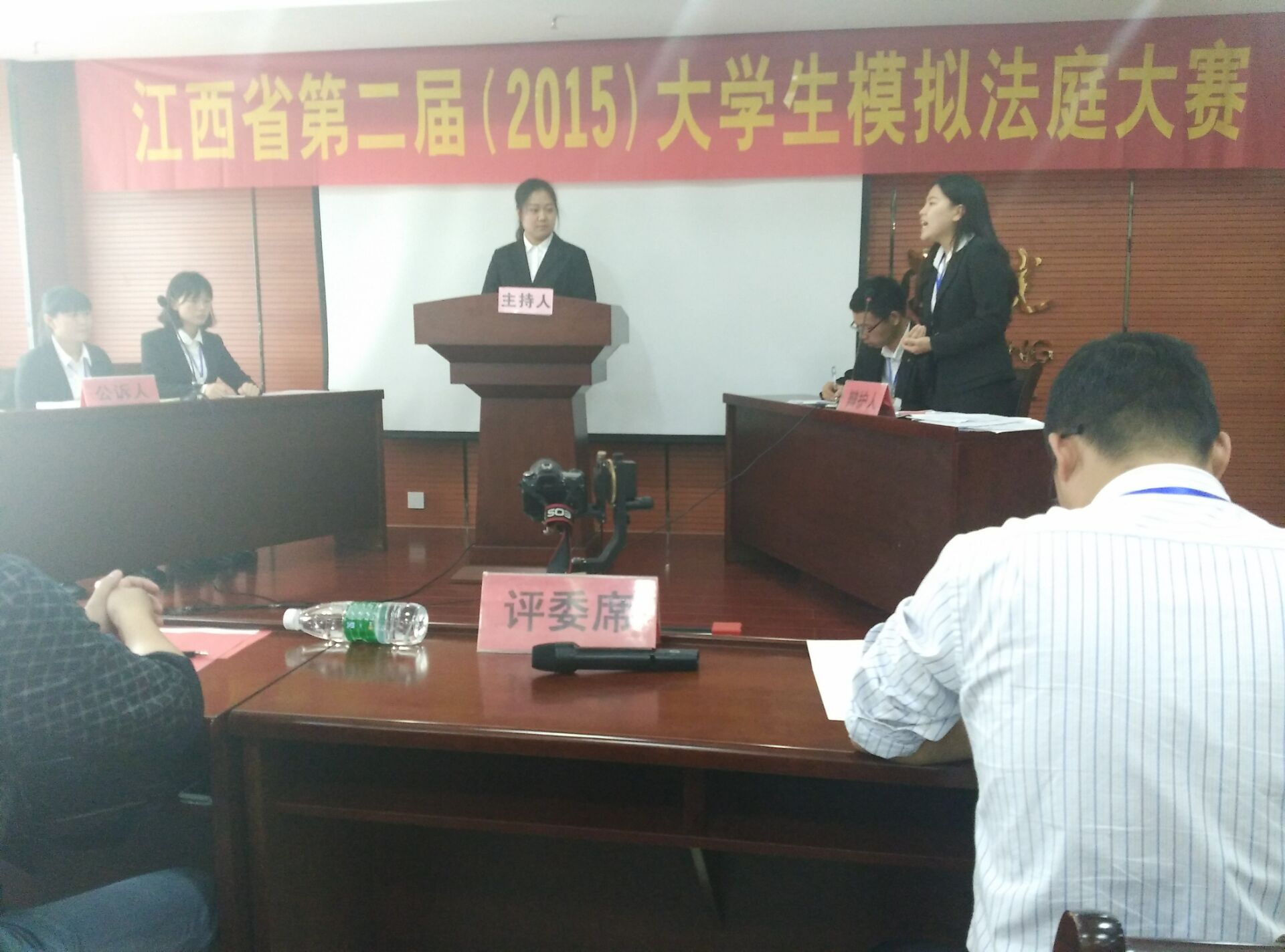 11月6日至8日,江西省高校第二届大学生“模拟法庭”大赛在江西理工大学(赣州校区)举行。此次大赛由江西省教育厅主办,江西省高等院校科技开发办公室与江西理工大学承办,江西省18支高校法学院(系)代表队参加了此次比赛,我院代表队也应邀参赛,学院团委书记陈小志和指导老师徐瑾带队参加了此次比赛。