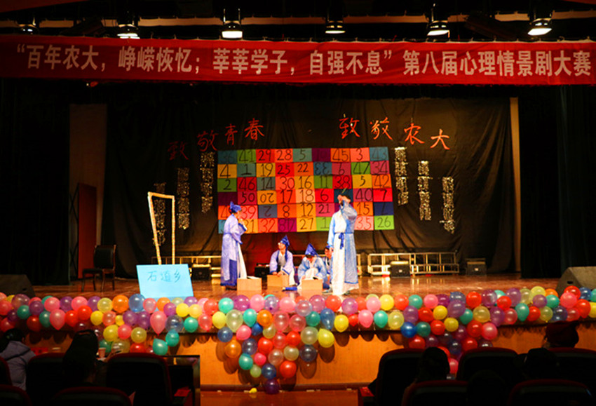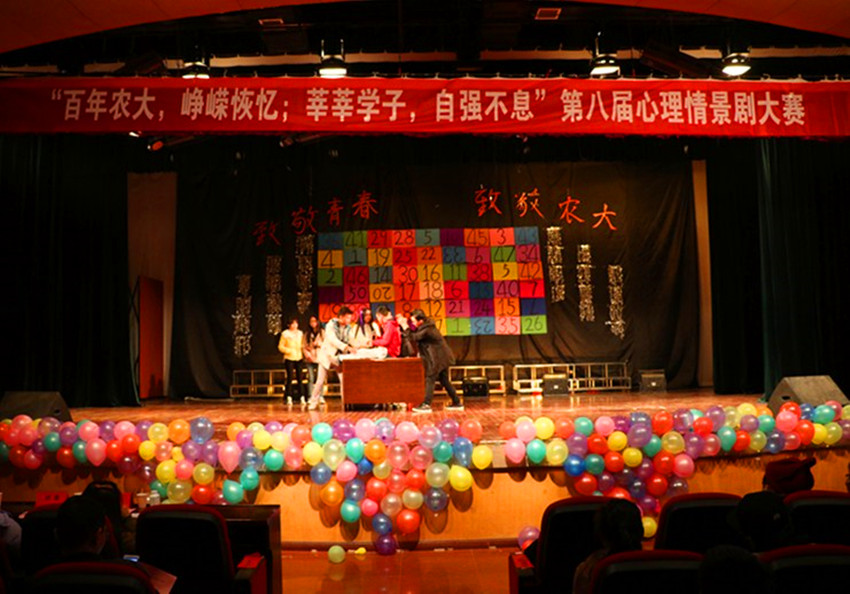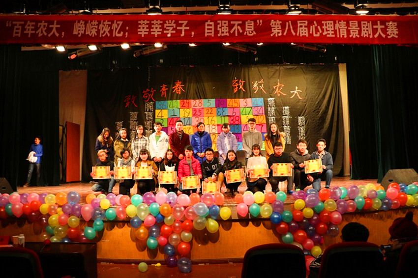 为丰富我院学生课余生活,营造和谐校园环境,12月8日晚,我院以“百年农大,峥嵘恢忆;莘莘学子,自强不息”为主题的第八届心理情景剧大赛在音乐厅成功举办。院团委指导老师王桂兰、宋琳、谢园琳、李镇出席本次大赛。