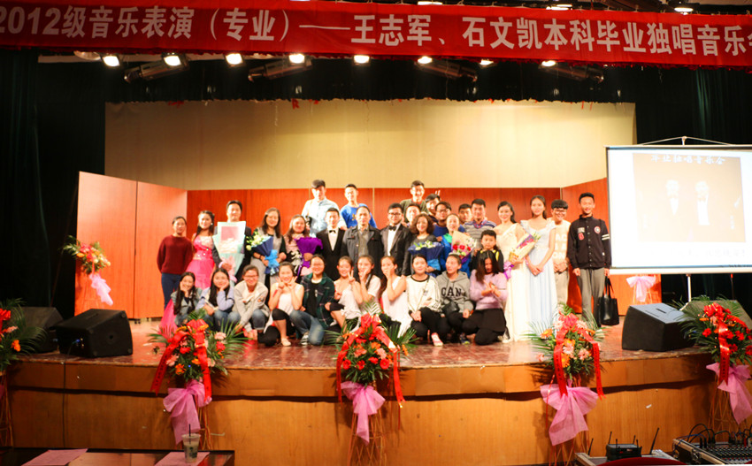 11月3日晚,我院音乐表演1201班石文凯、王志军同学在音乐厅成功举办毕业生独唱音乐会。我院副院长黄少峰,团委书记陈小志,团委指导老师谢园琳及音乐系各位老师莅临音乐会现场。