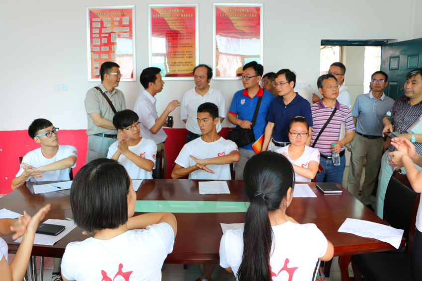 在学院党委书记郭锦墉的陪同下,校党委副书记陈金印和培训学员们对我院党团活动室的功能定位、特色展示、硬件设备等产生了浓厚兴趣,现场,陈书记也对志愿者协会的手语培训课堂和书画培训课堂表示肯定,对我院党团文化建设表示赞赏。(宣传部 管璐璐)