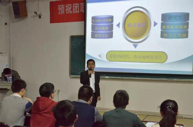 比赛以“情系江农——我的研究生”为主题,以社会主义核心价值观为指导,通过自制的PPT,向观众分享自身生活故事。来自人文院行管专业的三号选手陈祝红以慷慨激昂的语调向大家传达了在这个看脸的社会,越努力越美丽的价值观,引起在场观众的共鸣;接着,社保专业的四号选手罗晴珊以丁肇中为榜样,诉说着我们研究生在面对未知的时候应该保持严谨认真的求学态度,“知之为知之不知为不知”。经过激烈的角逐,来自人文院的陈祝红和罗晴珊获得了本次演讲比赛的亚军,展现了人文院的活力和魅力。