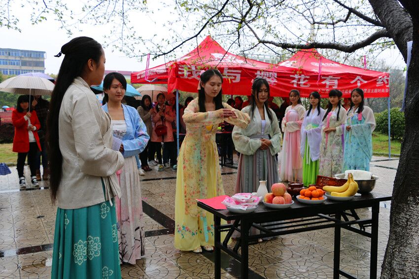樱花盛开之际,由我院团委主办、兰芷国学社承办的“我与樱花有个约会”国学宣讲活动于3月29日中午在南区樱花树下圆满举行。 此次活动以樱花盛开为契机,宣扬传统国学文化。活动开始,兰芷国学社的成员衣着汉服,为大家展示了我国古代庄重的花神祭祀仪式,接着带来了精彩的舞蹈表演,优美动人的舞姿与靓丽的服饰吸引了众多观众驻足欣赏。随后,活动现场开展的国学知识有奖问答更让国学文化得到了更为广泛而深刻的弘扬。(宣传部 贺颍 凌雅情 程磊)