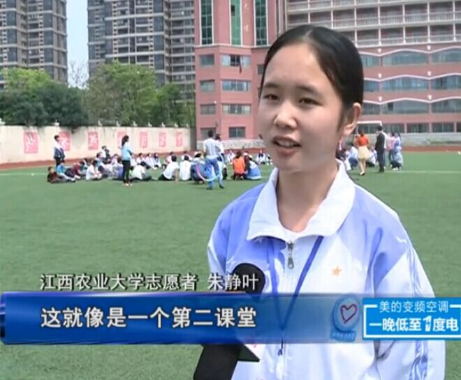 志愿者们通过开设体育课堂、手工课堂和智力课堂三大课堂,室内授课、户外活动同时进行,孩子们兴趣高涨,积极参与到各种活动中。此外,活动还受到江西教育电视台的关注,志愿者柳玮和朱金叶作为代表接受记者采访时表示:从小就有着志愿的梦想,希望尽自己的一份力帮助这些孩子,并从这些孩子阳光向上的笑容中得到很多鼓励。