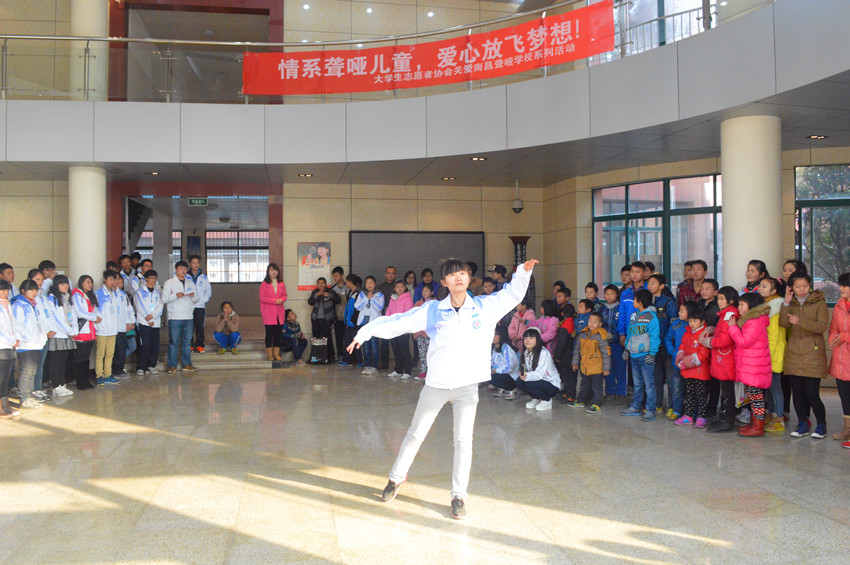 据悉,南昌市启音学校是一所在省内外较具规模、颇有影响的集学前康复教育、九年义务教育、普通高中教育、职业高中教育、师资培训、特教研究为一体的聋教育特殊教育学校。聋哑儿童,作为社会弱势群体,一直受到国家及社会各界人士的普遍关注。为响应团省委服务大局、服务青年、服务社会,奉献自我的号召,我院大学生志愿者协会在团省委和校团委的关心下,奉行“奉献、友爱、互助、进步”的精神,前往南昌市启音学校进行“一对一”社区对接活动。此次志愿服务扩大志愿者协会在学校和同学之间的影响及认同感,增强志愿者社会责任感及使命感,丰富志愿者校园生活。(宣传部管璐璐贺颍冯小航)
