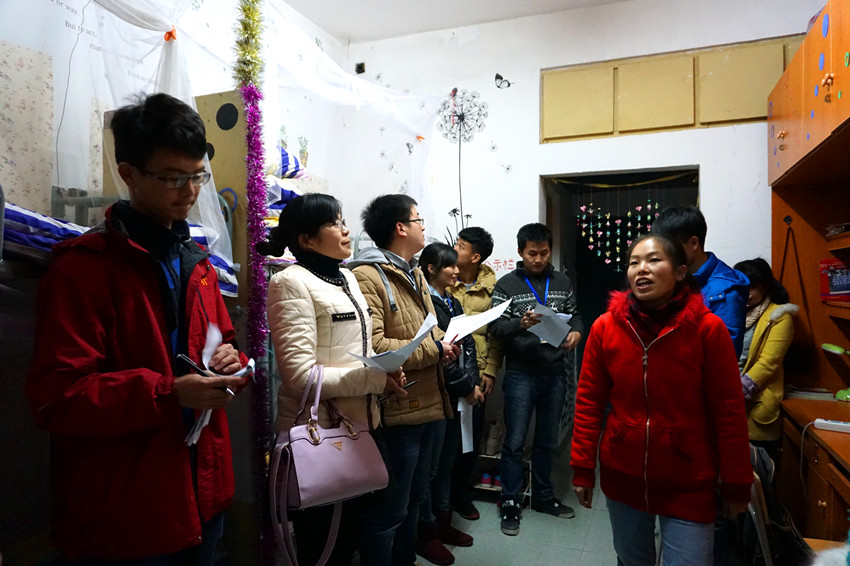 为丰富寝室文化生活,开展文明养成教育,迎接我校110周年校庆,我院举办第五届寝室风采大赛。12月12日晚,院团委指导老师王桂兰、冷球先和学生会委员作为评委参观各个参赛寝室评比打分。