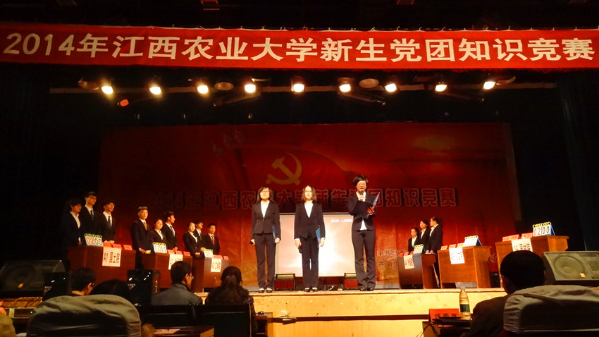 为促进党团员进一步学习党团知识,在新生中开展党的基本知识教育,12月8日晚,由校党委组织部和校团委联合主办的2014年新生党团知识竞赛圆满结束。经过初赛和复赛的选拔,共有我院在内的六支代表队挺进决赛。党办校办、纪委、组织部、宣传部、校团委的负责同志担任评委。